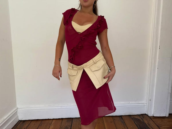 Made from eco mesh, re purposed from recycled plastic bottles, this adorable mesh midi can be worn so many ways! Tuck into a bikini to create a mini dress or wear backwards for an off shoulder look! She features a low V neck & side split.